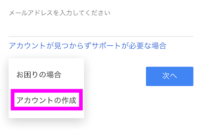もし、Googleアカウントを持っている人は、メールアドレスの入力へ進んでください。