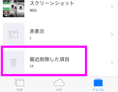 削除した写真や動画はいったん「アルバム」の中にある「削除した項目」に移動されます。