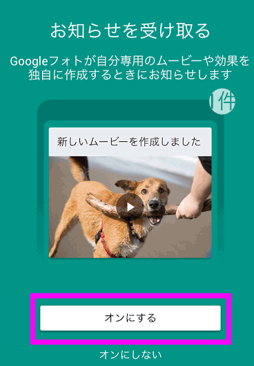 最後に「お知らせを受け取る」を「オンにする」(オフでも構いません)をタップします。