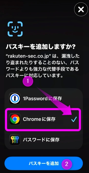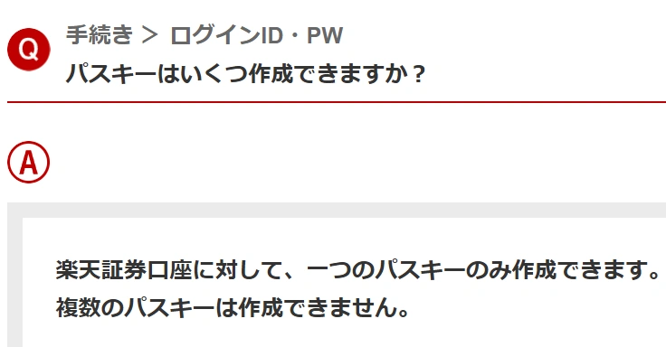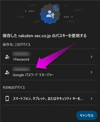 楽天証券のパスキーは制限が厳しく、保存先を1つしか指定できない!?