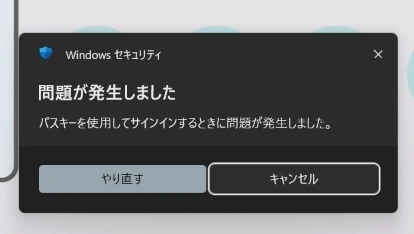 Windows内に保存は出来たのだけれど、いざ使おうとすると、「パスキーを使用してサインインするときに問題が発生しました」と表示されて、何度やっても使えない!