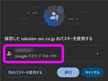 Google Chromeを使うと、自動でChromeに保存したパスキーを使ってくれるというわけ。