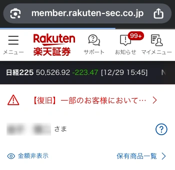 実際にパスキーで楽天証券にログインしようとすると、このように「問題が発生しました」と出てログインできない・・・・