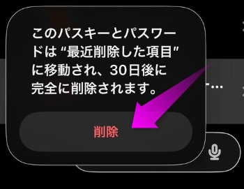 サイト側でパスキーを解除した場合は、このようにデバイス側(iPhoneやパソコン)も削除してください。