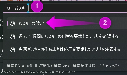 該当する項目がリストアップされるので、「パスキーの設定」をクリックします。