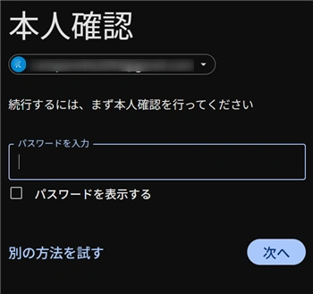 Goolgeアカウントのパスワードを入力し、「次へ」をクリック。