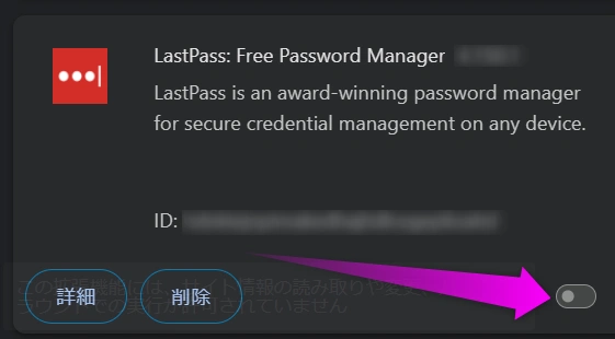 なので、必要がなければLastpassの拡張機能をオフにしてください。