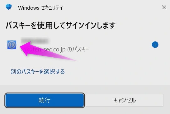 無事、Windowsだけでもパスキーで楽天証券にログインできました。