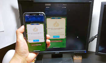 iPhoneとテレビをつなげるとどちらにも同じ画面が表示されます。なので、iPhoneで操作してください。