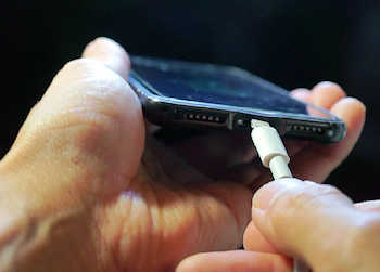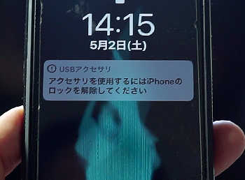 アダプタから伸びたLightningケーブルをiPhoneに刺します。