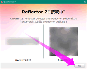 パソコンのReflectorを起動すると、このような画面が表示されますがこの画面を閉じてしまってもかまいません。