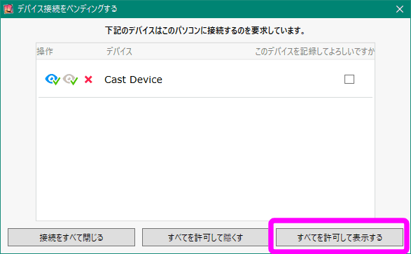 パソコンにこのような画面が表示されたら、「すべてを許可して表示する」をクリックします。