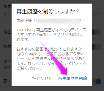 ほんとうに削除していいか聞いてくるので「再生履歴を削除」をクリックします。