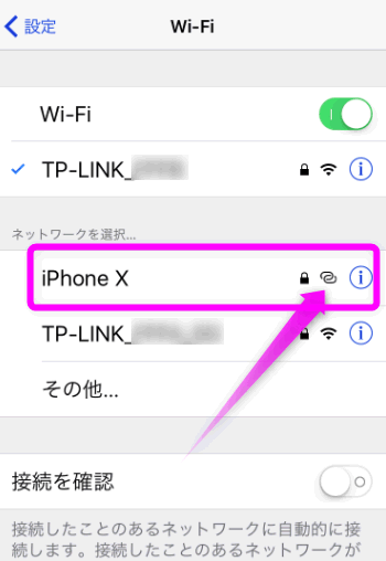 この時下に表示されている「Wi-Fiのパスワード」(8桁)をメモしておきます。