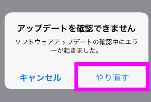 このように「アップデートを確認できません」と表示される場合は、「やり直す」を何度か実行してみてください。