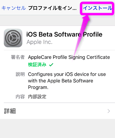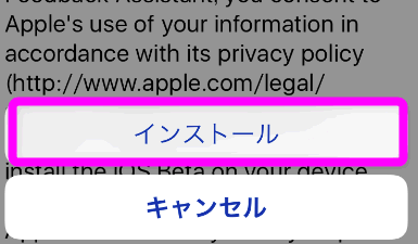 画面の下に再び確認するかのようにインストールするか聞いてくるので、「インストール」をタップします。