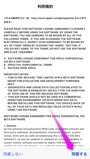 「利用規約」が表示されるので、右下にある「同意する」をタップします。