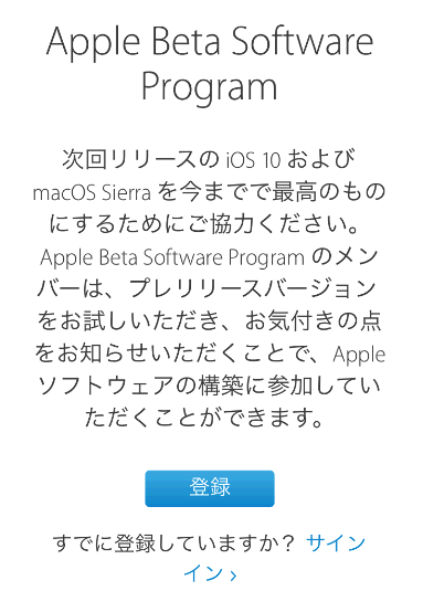iOS10パブリックベータ版をインストールするには、あらかじめ「Apple Beta Software Program」のメンバーに登録しておく必要があります。