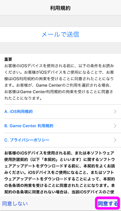 再び「利用規約」が表示されるので、右下の「同意する」をタップします。