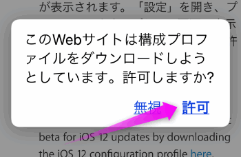 ダウンロードしていいか聞いてくるので、「許可」をタップします。