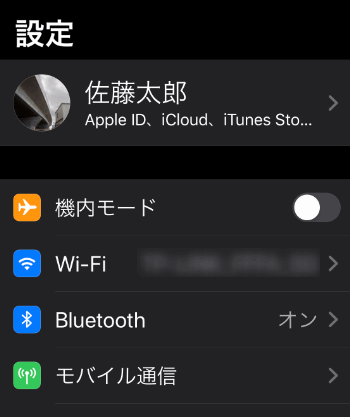 ダークモードにすると設定はこんな感じ。まだアプリはダークモード対応のものがほとんどないので、今のところ設定ぐらいしか影響がないようです。