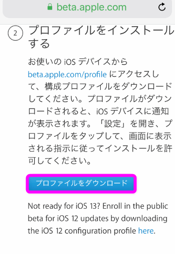 「プロファイルをダウンロード」というボタンがあるので、ここをタップします。