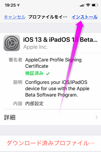 iOS13 プロファイルのインストール