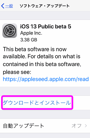 iOS13 パブリックベータ版のインストール