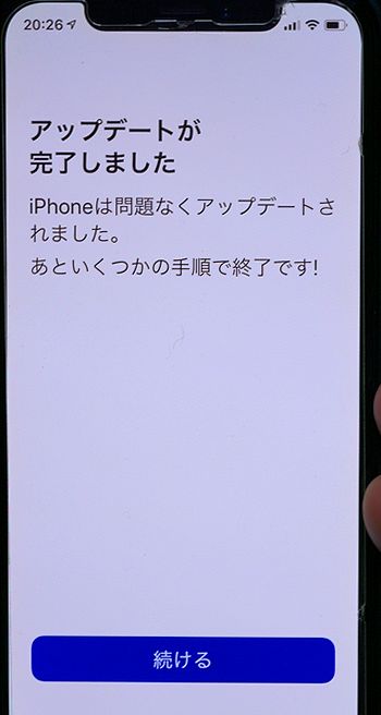画面が点灯して「アップデートが完了しました」と表示されたら指示に従っていきます。