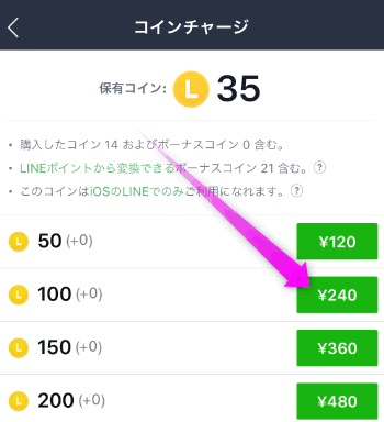 100コイン(240円かかる)を購入してみます。