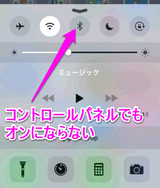 コントロールパネルを開いて、Bluetoothのボタンをタップしても、やはりなにも反応しません。