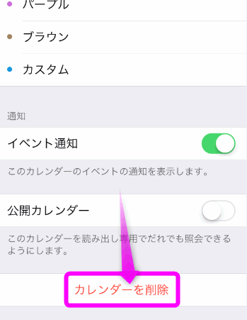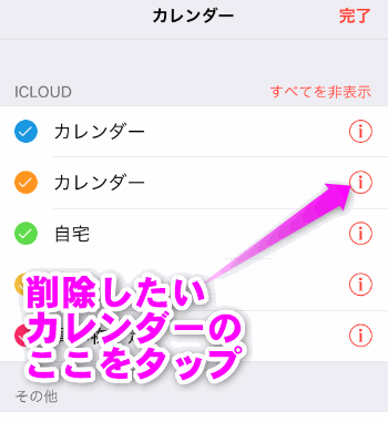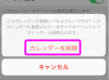 本当に削除していいかもう一度聞いてくるので、「カレンダーを削除」をタップします。