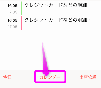 画面の一番下中央に「カレンダー」というボタンがあるのでここをタップします。