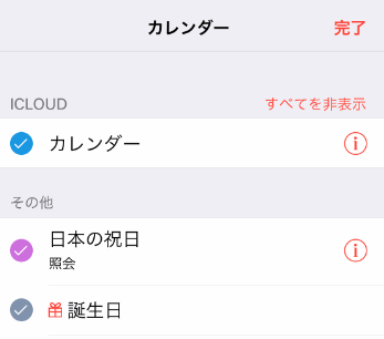 カレンダー用のアカウントが表示されました。「カレンダー」というアカウントが2つ重複していますね。
