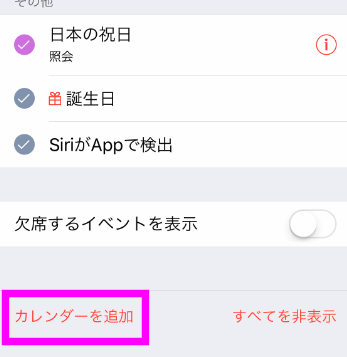 先程の画面で、左下にある「カレンダーを追加」をタップします。