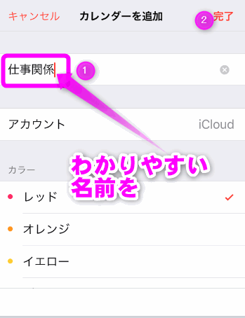 ①新しいカレンダーの名前を入力します。