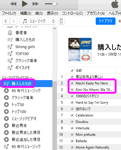 日本語の曲名に戻すには2つのやり方があります。1つはいったんダウンロードした曲を削除して、再びダウンロードする方法。削除したら二度とダウンロードできないのでは?と思うかもしれませんが、ちゃんと再ダウンロードできます。