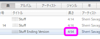 さて、「停止」にチェックが入っていないのに、途中で曲が終わったり次の曲に飛んでしまう場合は、iTunesやiPhoneの曲の長さを正確に取得できていないのが原因です。