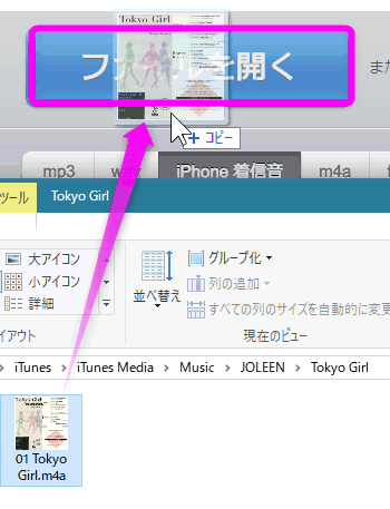 先ほどエクスプローラーで表示した曲をiTunesにドラッグして登録しなおします。
