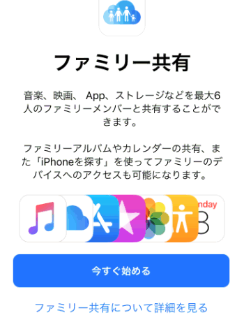 この画面が表示された場合は、ファミリー共有はオフになっています。