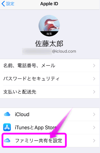 ファミリー共有がオンになっている場合