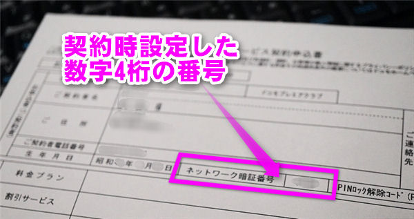 ネットワーク暗証番号とは、docomoのスマホや携帯電話を購入した時に、お店の契約書に記入して決めた4桁の数字です。