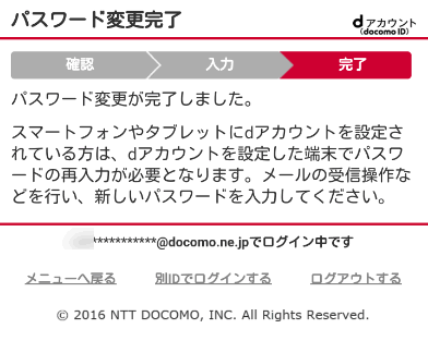 パスワードを変更した場合、すぐに「ドコモメール」のパスワードを変更してください。古いパスワードを使用したままだと、dアカウントがロックされてしまう可能性があります。