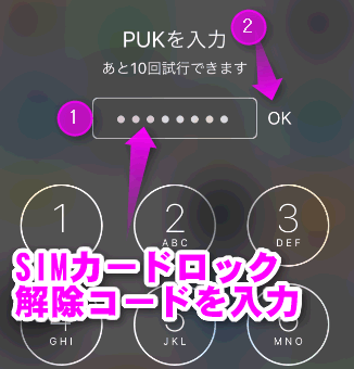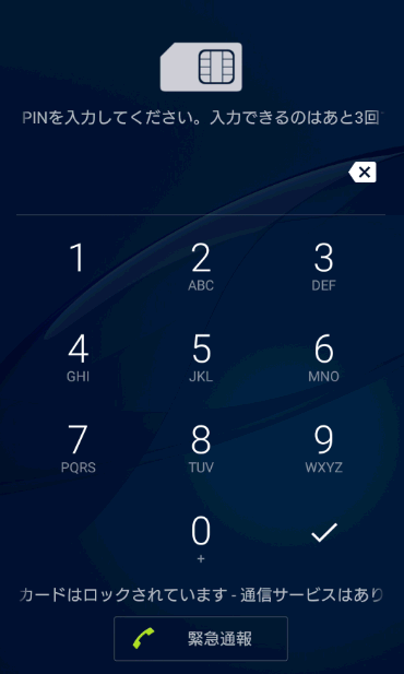 これを解除するには、「PINロック解除コード(PUK)」を入力する必要があります。