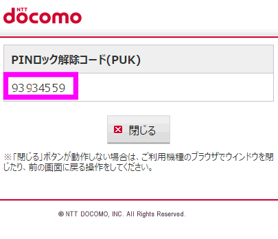 PUKの入力は10回まで間違えても大丈夫なのですが、10回以上間違えるとドコモショップでないと解除できなくなるので注意。