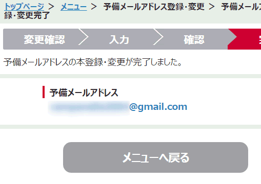 ※ 予備メールアドレスを登録していない場合は、この方法では調べられません。登録したと思われるメールアドレスを推測するしかありません。