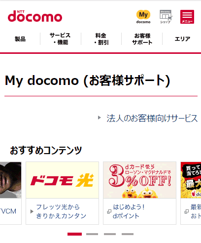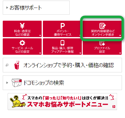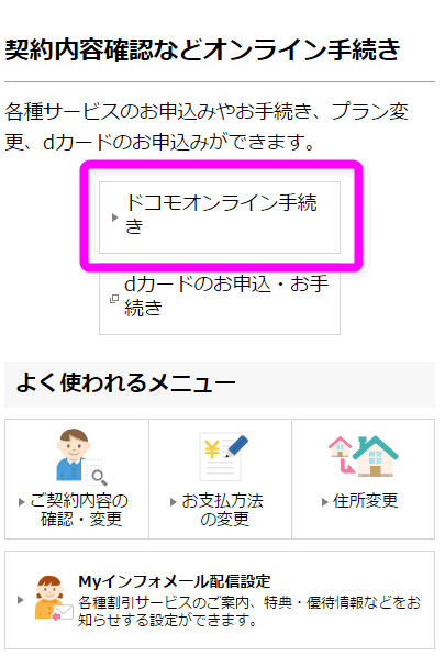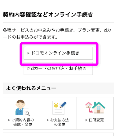 My docomoにアクセスして、「ドコモオンライン手続き」をタップします。