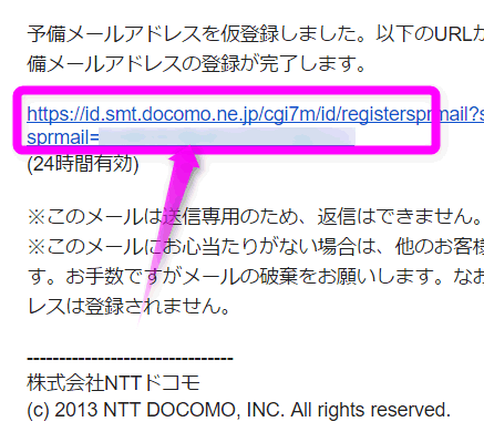 登録した予備のメールアドレスに、URLが記載されたメールが届くのでこのURLをタップします。