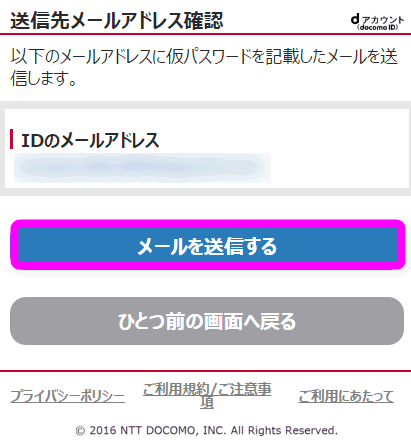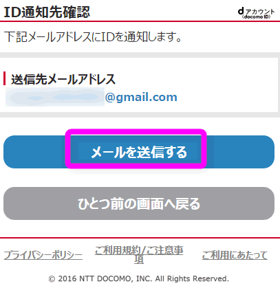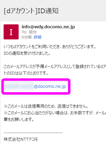 予備メールアドレスに、dアカウントのIDが記載されたメールが届きます。