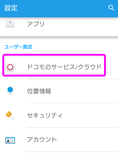 「設定」を開き、「ドコモのサービス/クラウド」をタップします(Xperiaの場合)。